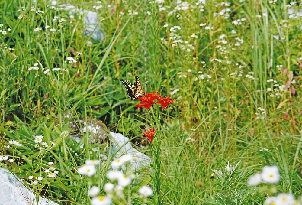 ハイキングに最適な季節、一面を黄色に染めるハンカイソウや、緑のなかにポツンと赤や白の花を咲かせるユリ科の植物、カラフルな花々が目を楽しませてくれます。