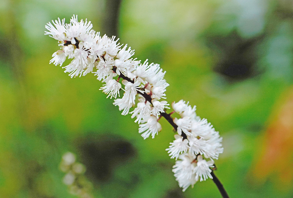 | 特徴 | 多数の白い小花が咲く、花穂の長さは20-30㎝あり、ひとつひとつの花が細かいため白いブラシのように見える。 |